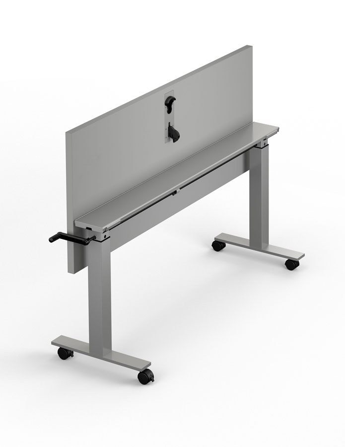 Porter table, a manually adjustable height work table by use of a hand crank. Adjust the height from 27-1/4" up to 45".